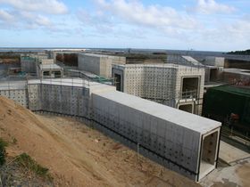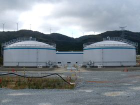 ろ過水タンクおよび水処理建屋(中央奥の建物)